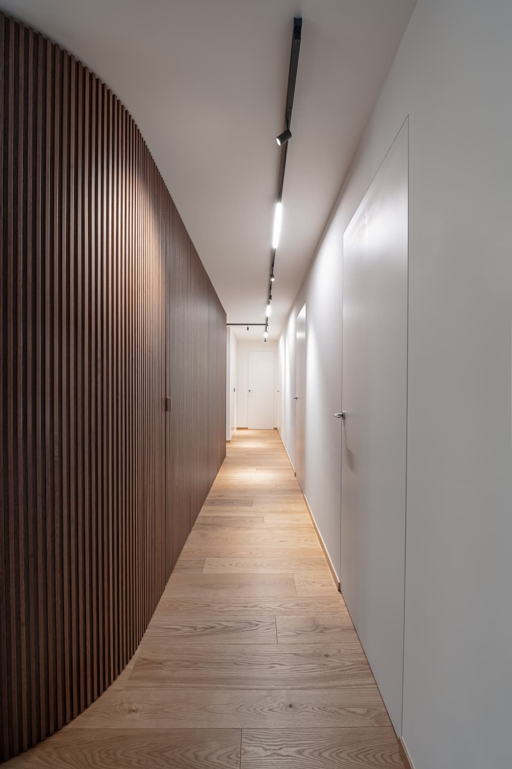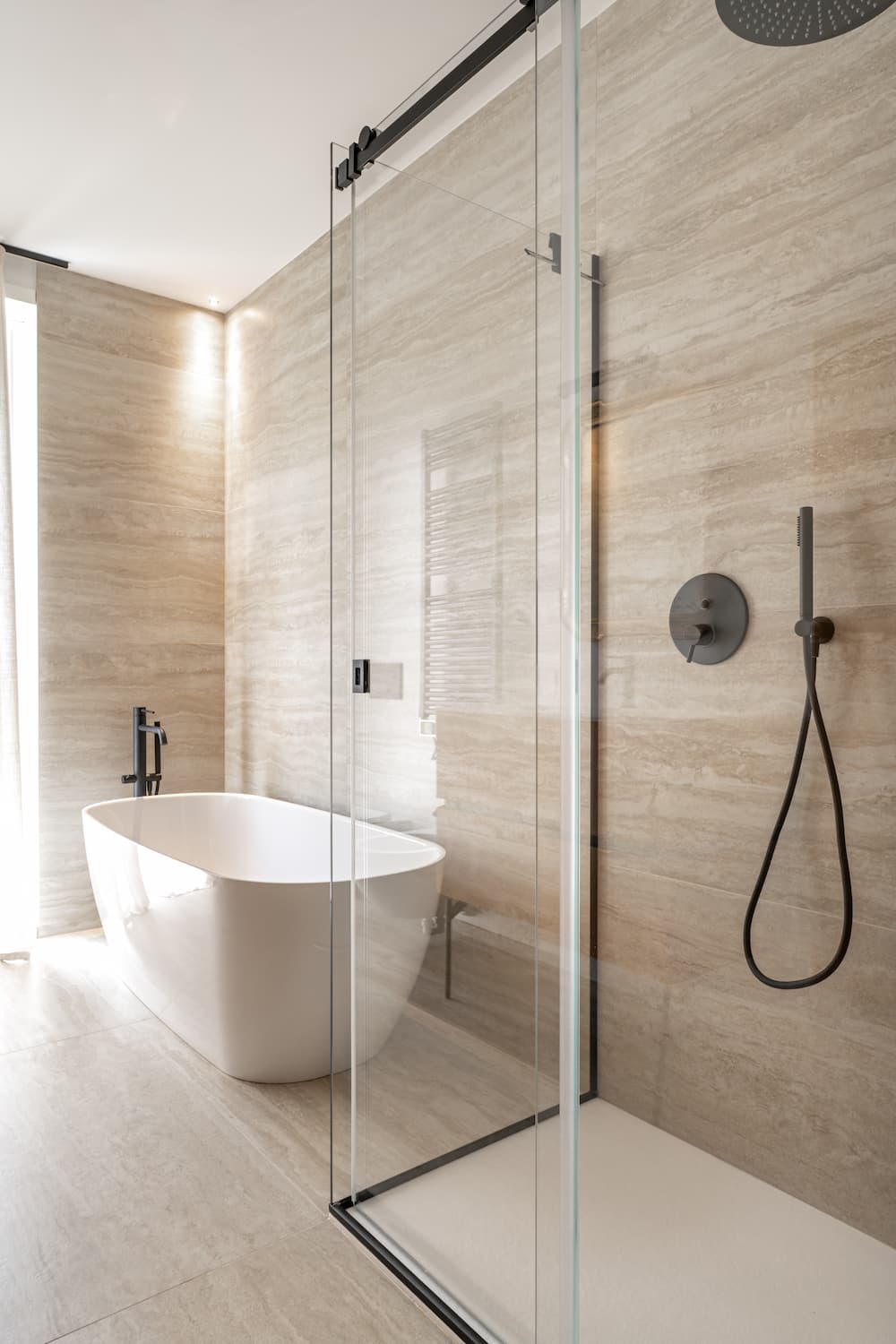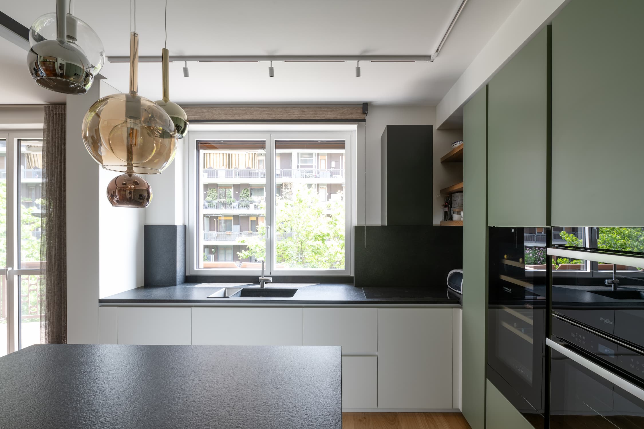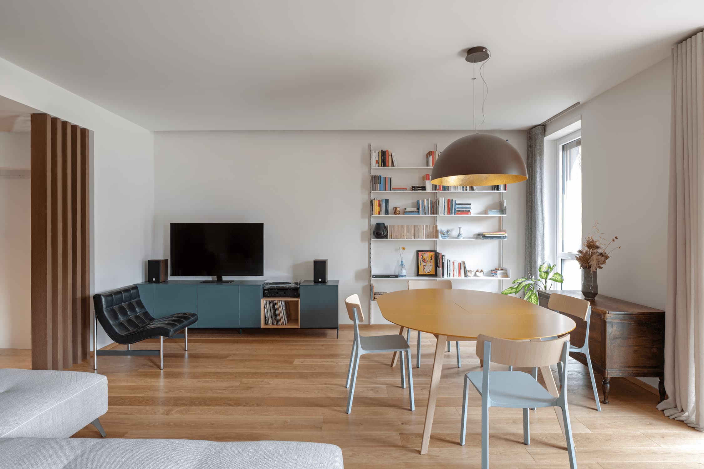 La luce valorizza i rivestimenti selezionati per Casa D e consente alla palette curata di perpetuarsi per tutta l'abitazione sottolineando l’incontro tra lo stile pop e quello minimalista.